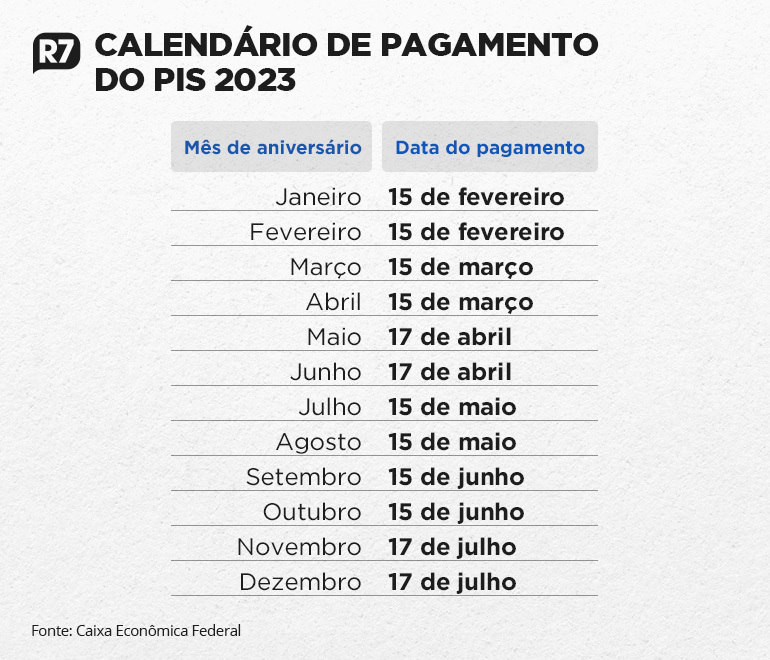 O calendário para os trabalhadores da iniciativa privada (PIS) é definido de acordo com o mês de nascimento.