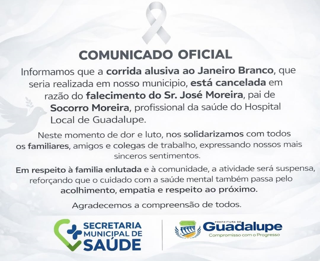 Segundo comunicado oficial, a decisão foi tomada em razão do falecimento de José Moreira, pai de Socorro Moreira, profissional da saúde que atua no Hospital Local de Guadalupe. Em respeito ao momento de luto da família, a atividade foi suspensa.
