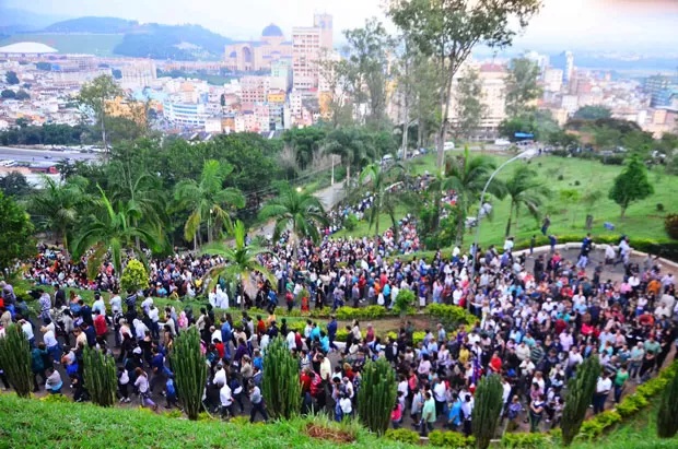 A caminhada foi conduzida por um Missionário Redentorista e seguiu pelas 14 estações da Via Sacra, terminando no alto da colina, que tem cerca de 87 metros de altura.
