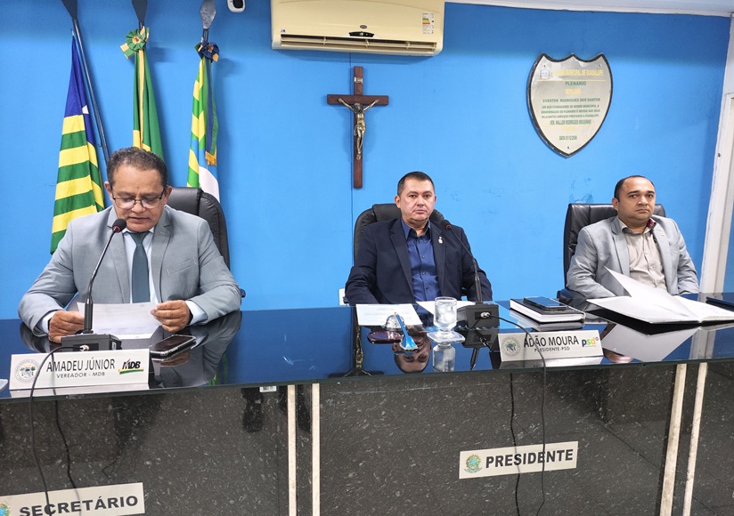 Estiveram presentes na sessão os vereadores Adão Moura (presidente), Tharlis Santos, Dr. Amadeu Júnior, João Martins e Dr. Dilson Barbosa Gomes. As ausências dos vereadores Naum Passos, Domingos Martins, Lorena Antunes e Vanuza Monteiro foram justificadas pelo presidente da Câmara, Adão Moura.