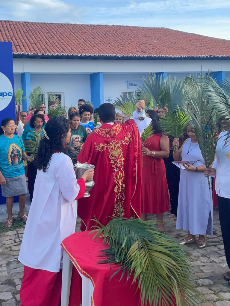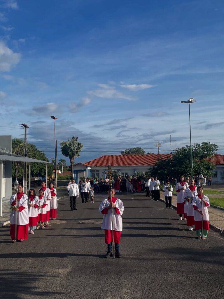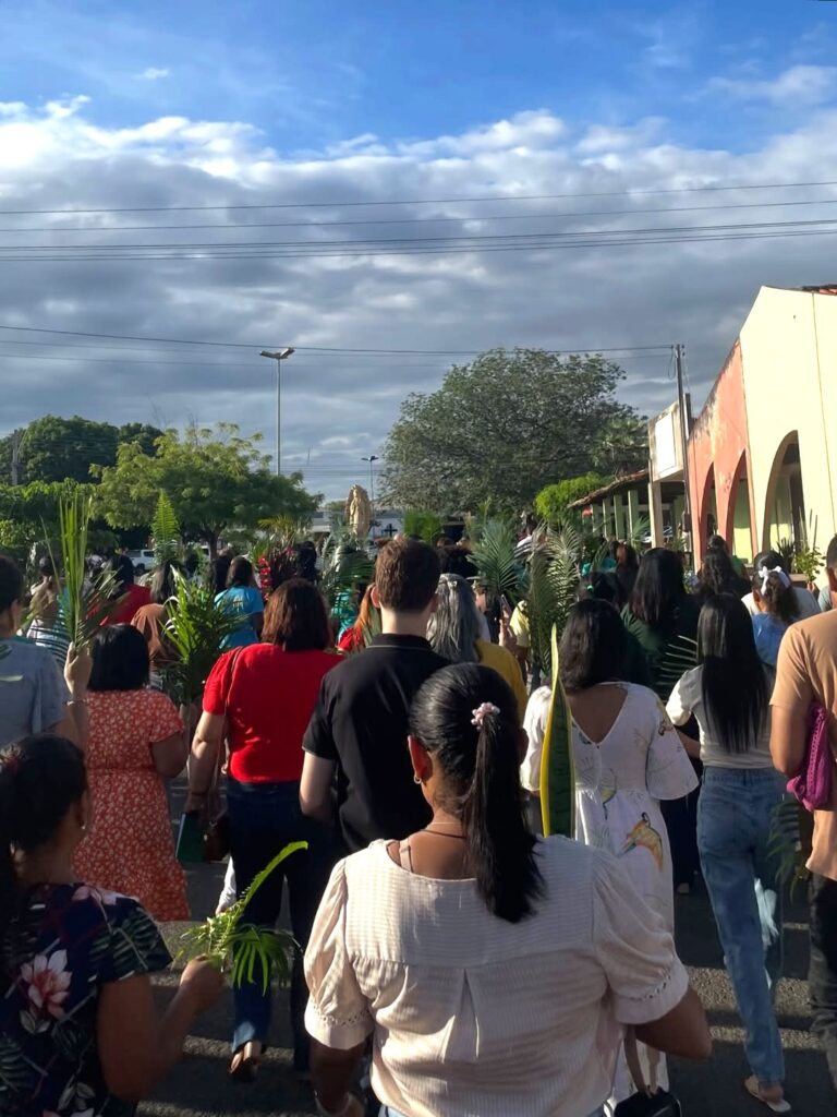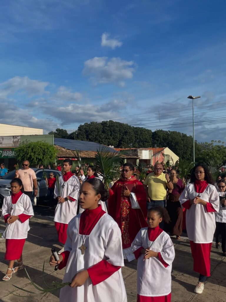 A programação teve início com a bênção dos ramos, em frente à sede da Prefeitura Municipal, seguida de procissão conduzida pelo pároco Padre Pedro Messias. Durante o percurso, os participantes entoaram cânticos e carregaram ramos, relembrando a entrada de Jesus em Jerusalém, episódio que marca o início da Semana Santa no calendário da Igreja Católica.