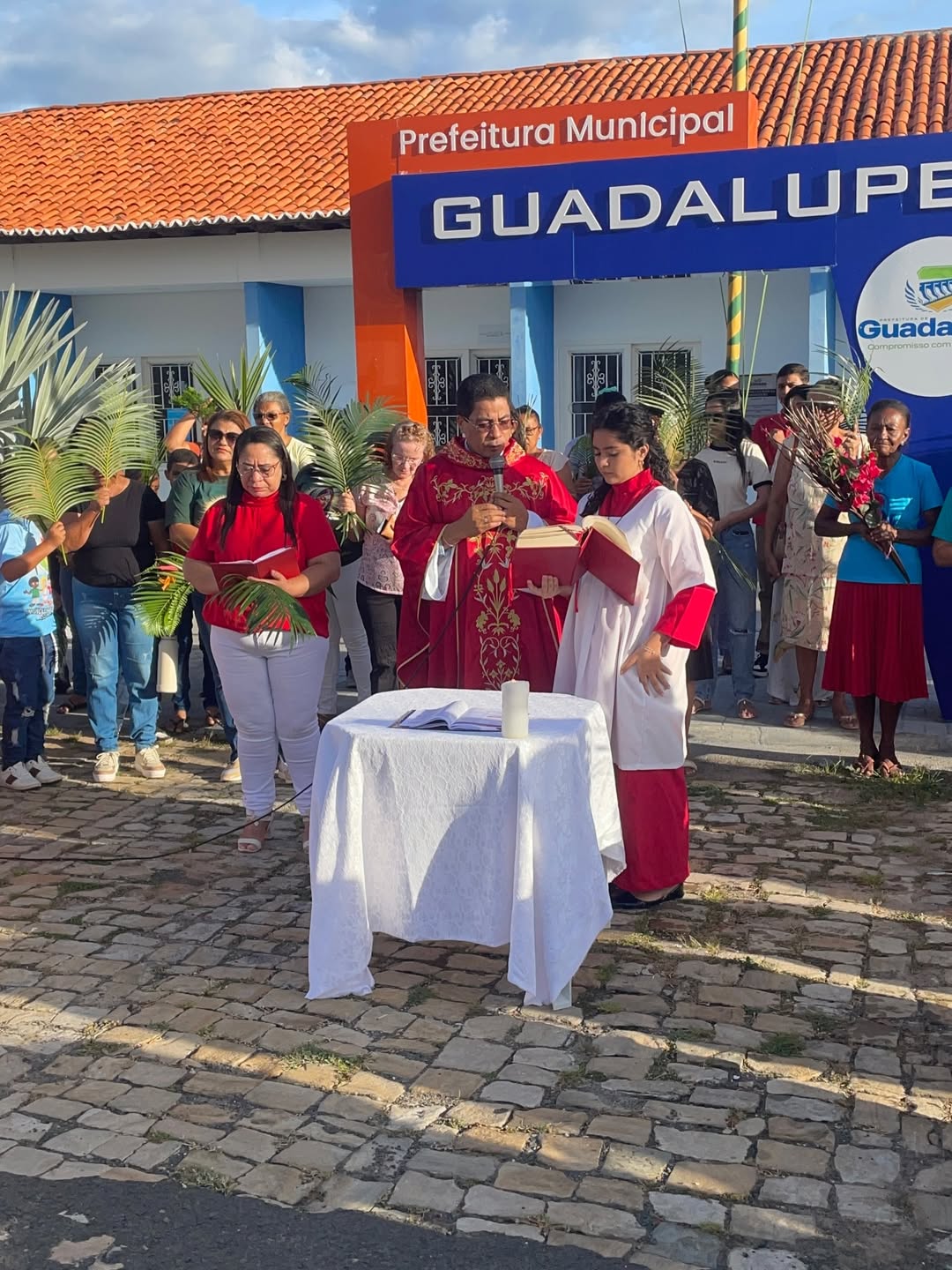 O Domingo de Ramos foi celebrado neste domingo, 29 de março, em Guadalupe, com programação religiosa que reuniu fiéis em procissão pelas ruas do centro da cidade e celebração da Santa Missa na Igreja Matriz.