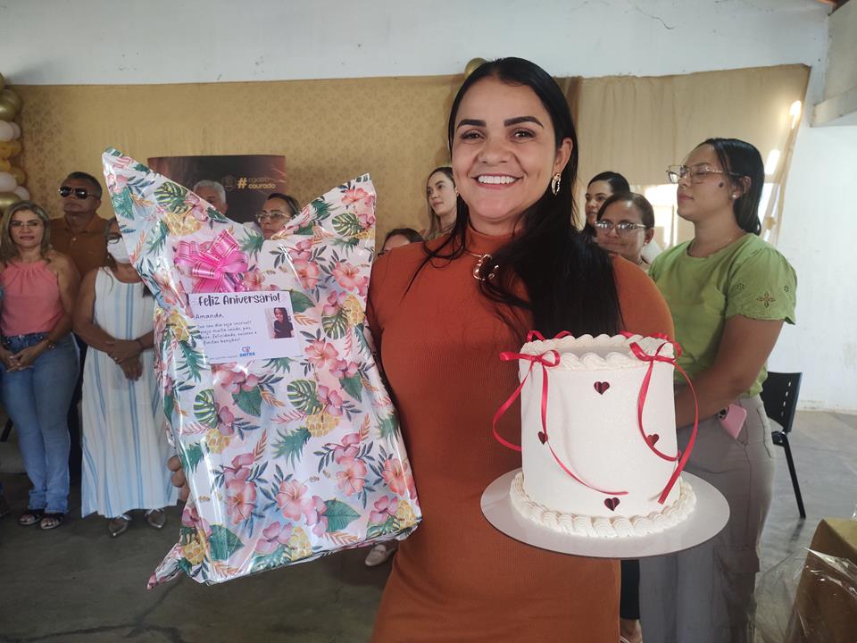 A manhã também reservou um momento de carinho especial: a equipe da Assistência Social surpreendeu a primeira-dama Amanda Souza, que aniversaria nesta quarta-feira, com bolo e presentes. A homenagem emocionou os presentes e reforçou o clima de celebração.