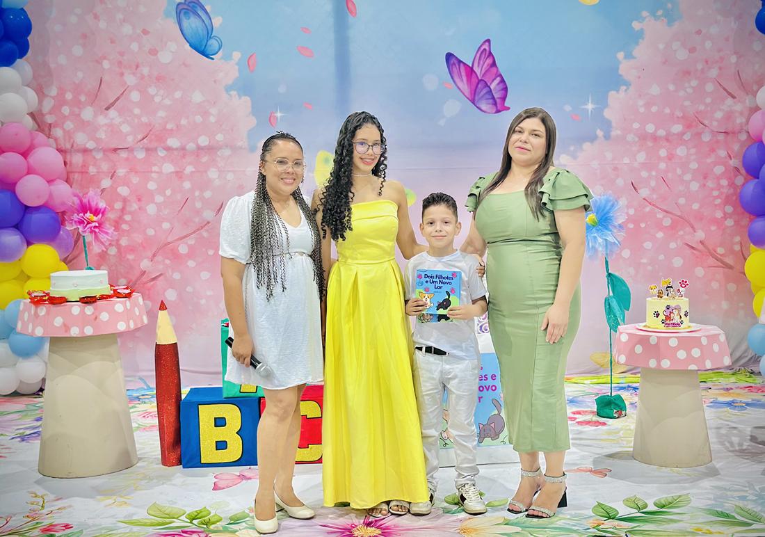 Célya também destaca o apoio fundamental de sua família, incluindo seu esposo Wagner Fabiano Luiz, sua mãe Izabel e seus filhos Hadassah, Hyannah, Haysssah e Hugo.