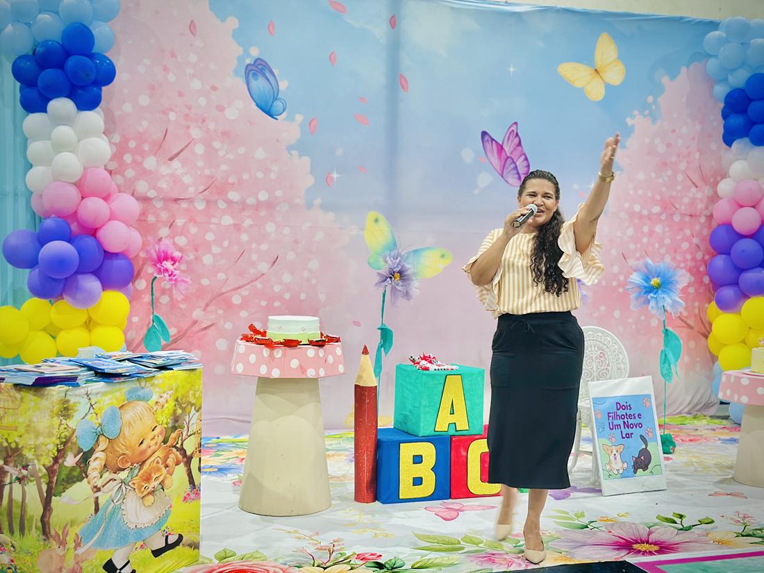 A escritora, psicopedagoga e educadora Célya Mello tem desenvolvido, há três anos consecutivos, um trabalho literário voluntário e transformador com crianças da Educação Infantil na Escola Municipal Sebastião Pereira Lima, em Guadalupe. Por meio do projeto “Pequenos Grandes Autores”, ela conduz alunos do Jardim IIA à criação de suas próprias histórias, estimulando imaginação, expressão e protagonismo infantil.