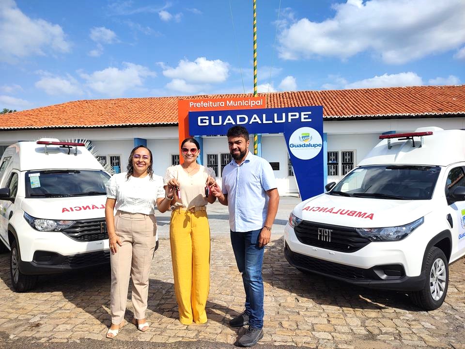 Na manhã desta segunda-feira, 24 de novembro, a gestão municipal de Guadalupe entregou duas novas ambulâncias que passam a integrar a estrutura de atendimento aos pacientes do município. A cerimônia aconteceu em frente à sede da Prefeitura e foi conduzida pelo prefeito Jesse James, acompanhado da secretária municipal de Saúde, Amanda Souza Miranda.