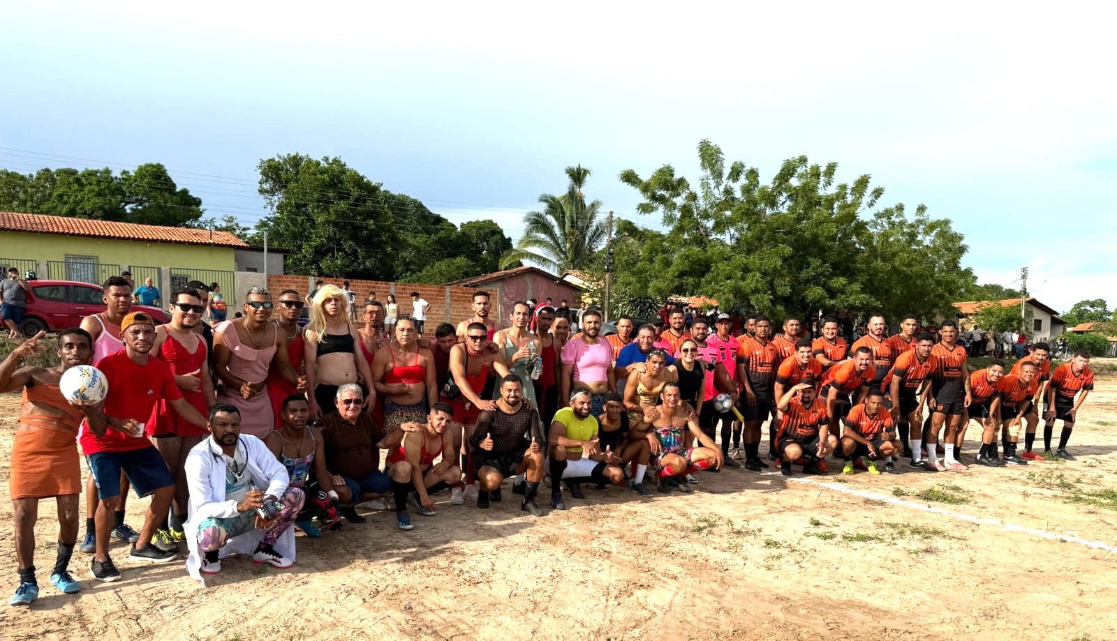 Uma partida de futebol singular, com homens disputando caracterizados e vestidos como mulheres. O jogo é uma verdadeira tradição de quase quatro décadas, realizada sempre no Natal.