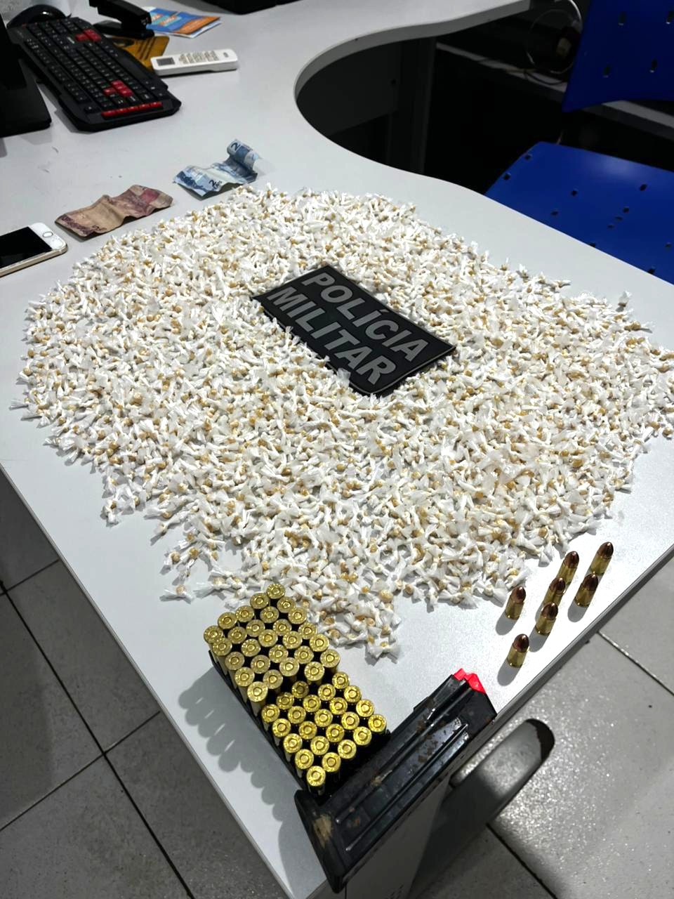 A suspeita foi conduzida à Delegacia de Polícia Civil, juntamente com todo o material apreendido e vai responder pelos crimes de tráfico de drogas e porte ilegal de munição