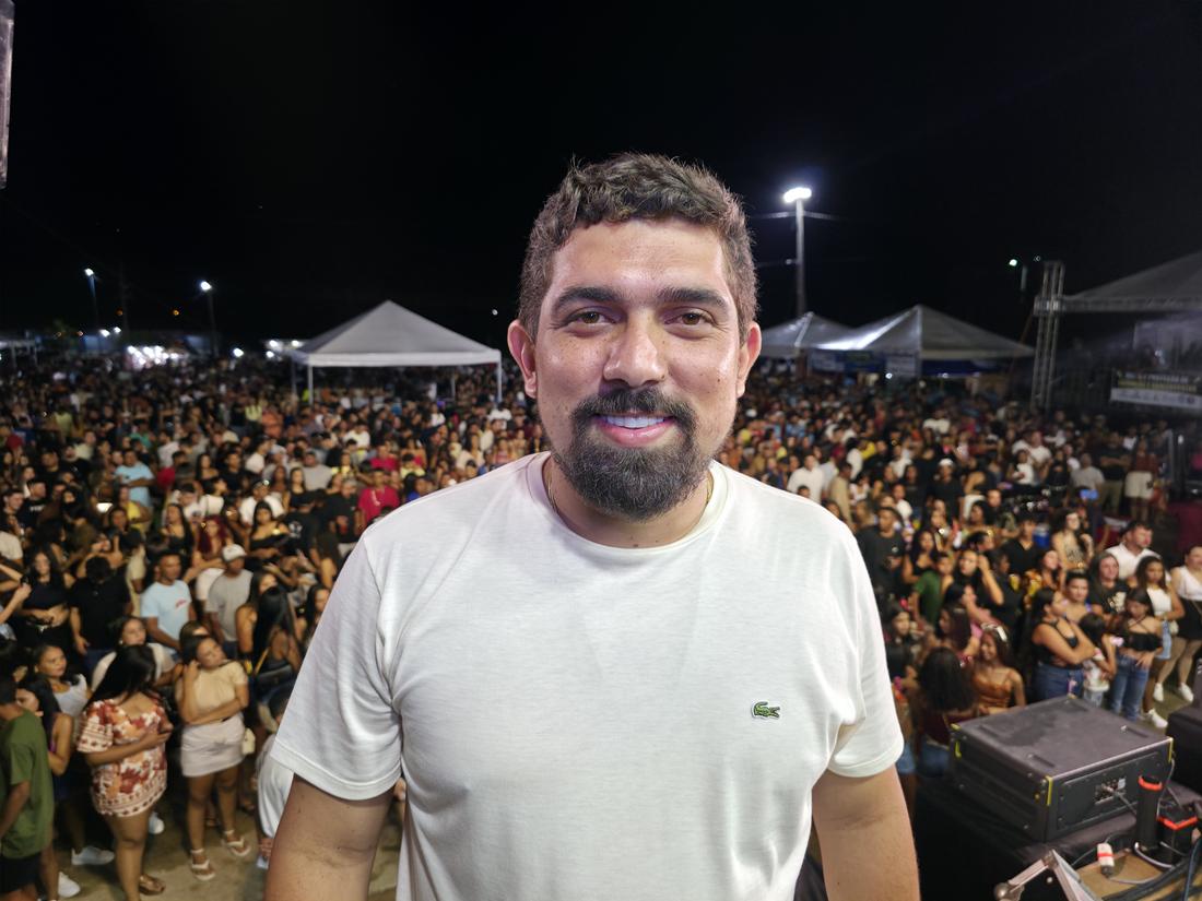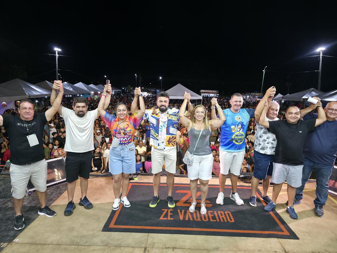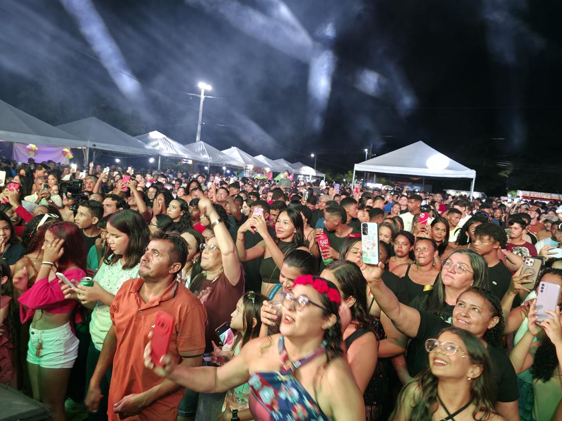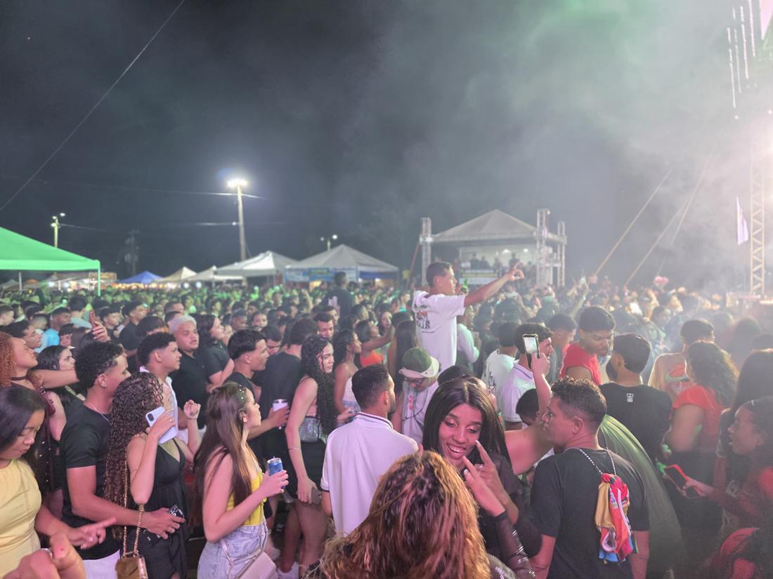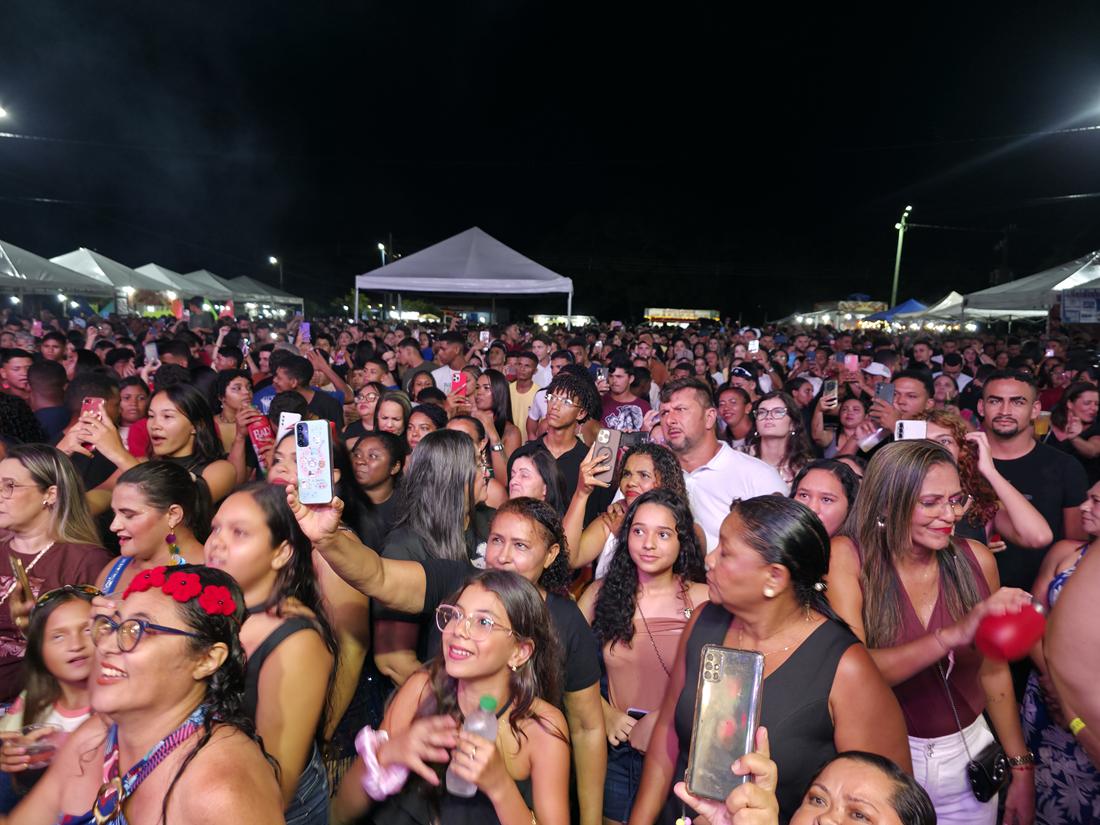 Na sequência, o cantor nacional Zé Vaqueiro levou o público ao delírio com seus principais sucessos, cantados em coro por uma multidão que ocupava toda a área do Balneário. O artista interagiu com os fãs. Para encerrar a programação de sexta-feira, Oh Polêmico comandou o palco e manteve a energia alta até o fim, garantindo uma noite de muita música e animação. O espaço estava completamente lotado, com famílias, jovens e visitantes prestigiando o evento.
