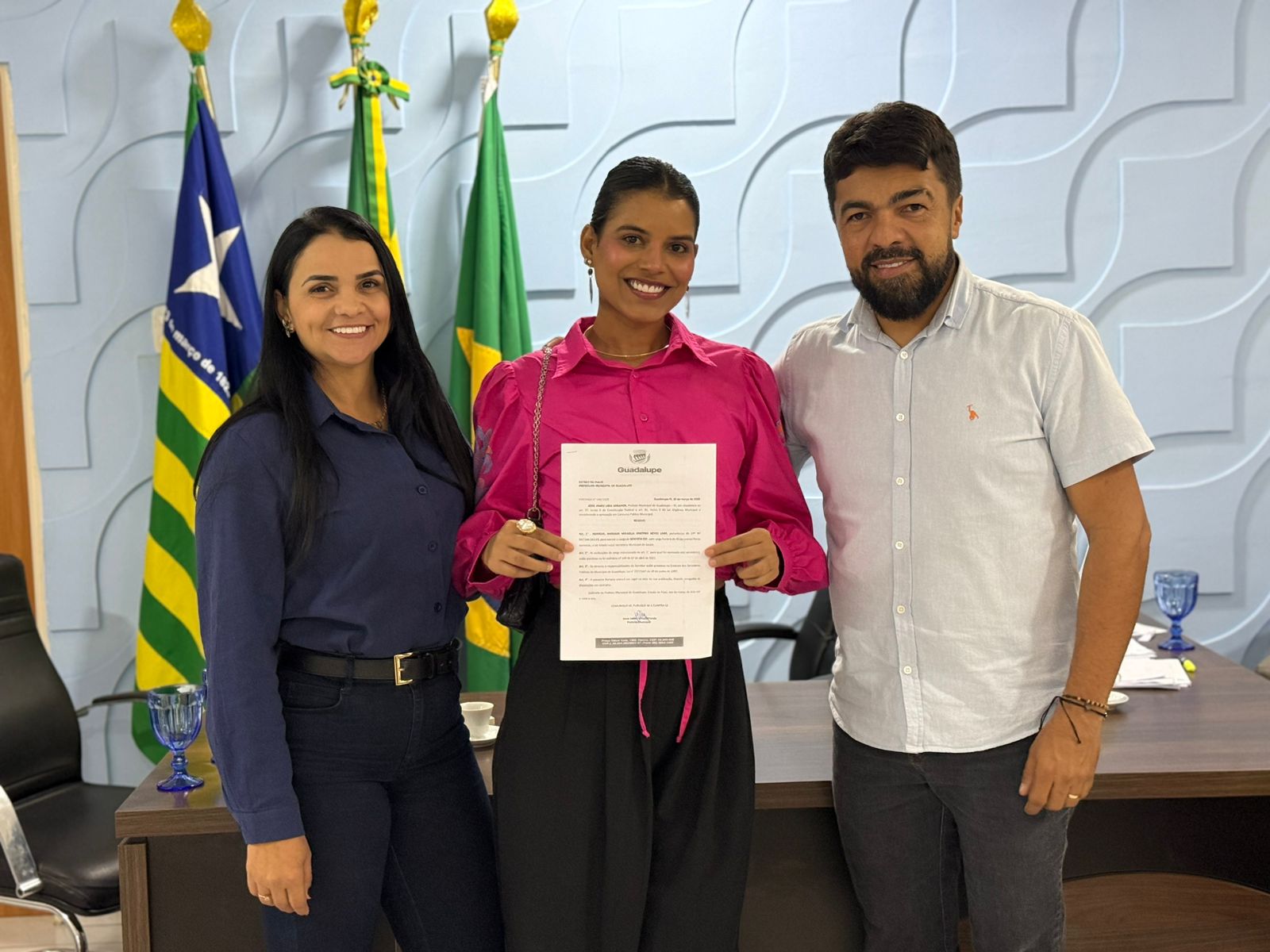 A Prefeitura de Guadalupe realizou, na quarta-feira, dia 11 de março, a cerimônia de posse de novos servidores aprovados em concurso público. O ato ocorreu na sede da Prefeitura Municipal e contou com a presença do prefeito Jesse James e da secretária municipal de Saúde, Amanda Souza.