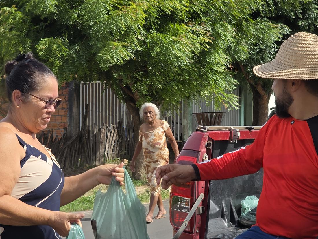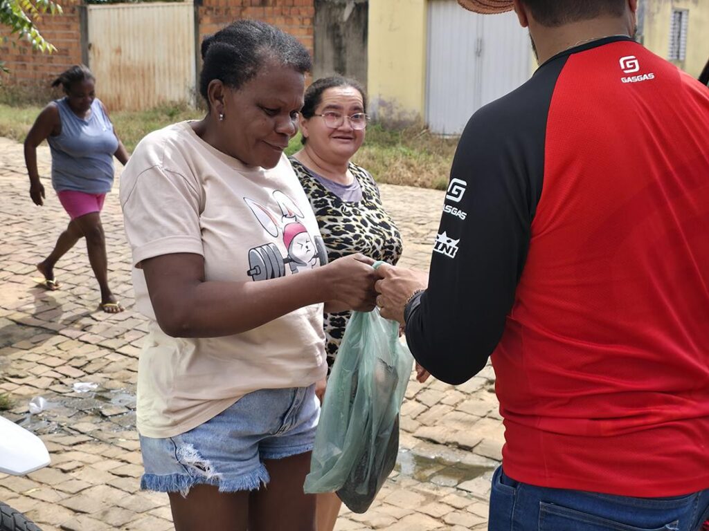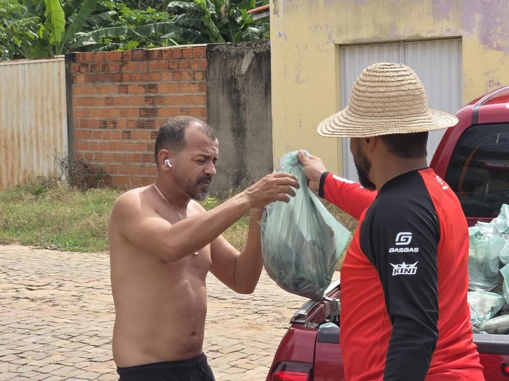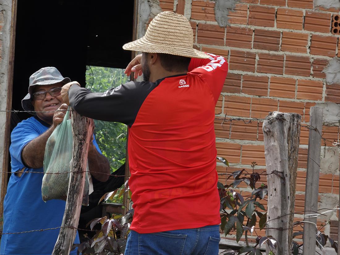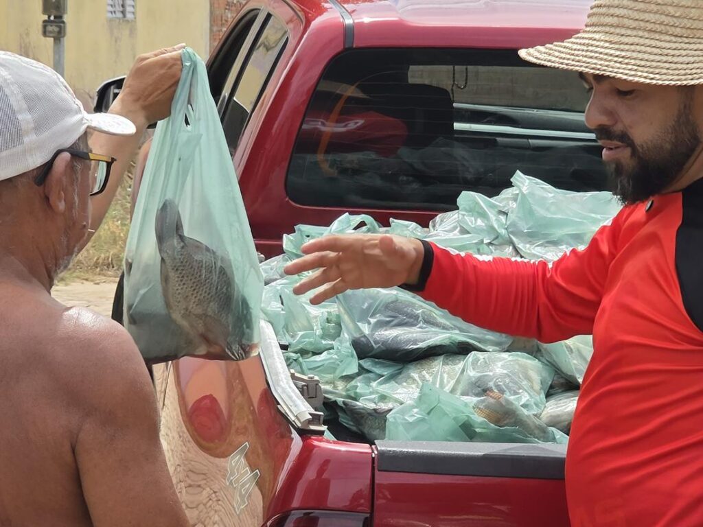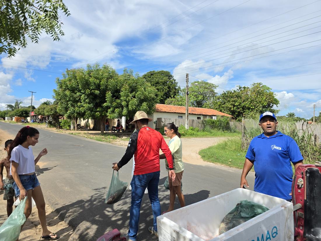 A distribuição teve início pelos bairros Cruzeta e Bela Vista. Famílias de outros bairros também receberão os pescados.