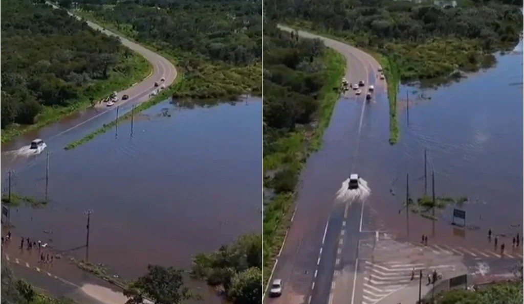 Apesar do alagamento, a Polícia Rodoviária Federal (PRF) informou, na manhã desta terça-feira (10), que a rodovia não foi interditada. Segundo o órgão, o fluxo de veículos segue normal, embora equipes tenham realizado a sinalização da área para alertar os motoristas sobre o risco causado pela água na pista.