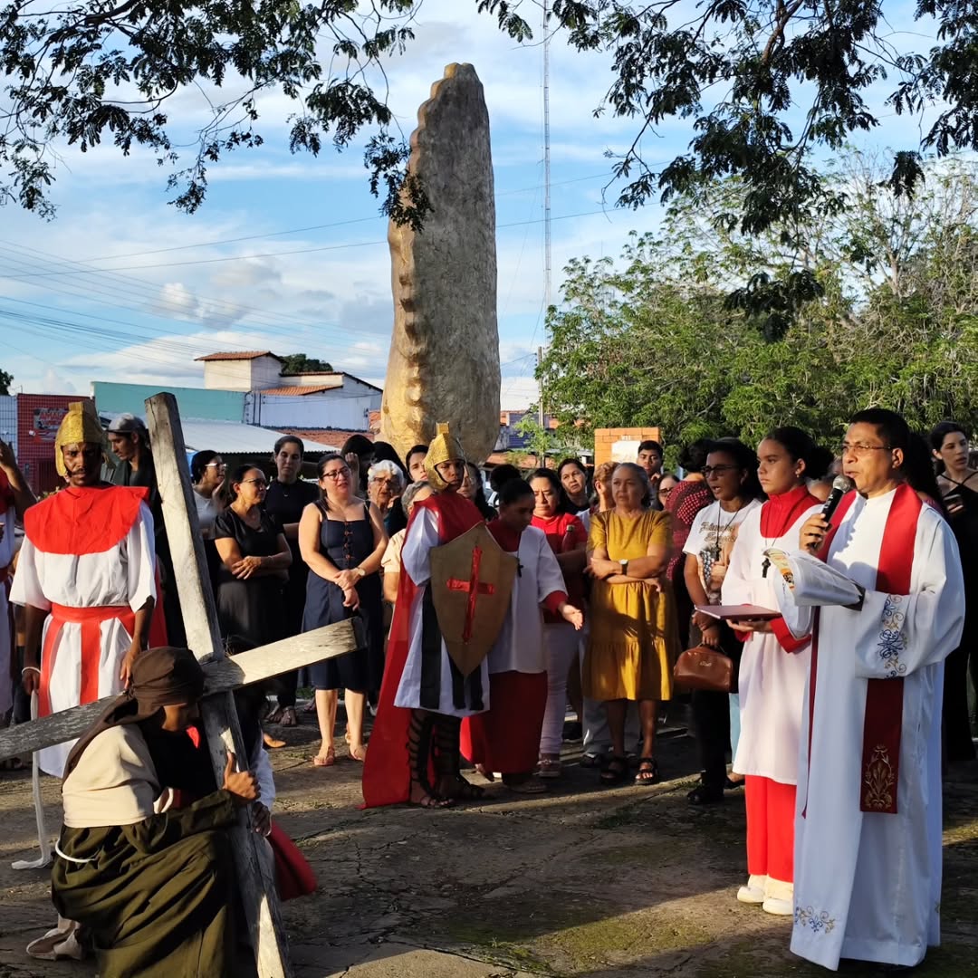 Via-Sacra encenada pela Companhia Arrocha o Nó reúne fiéis na Igreja Matriz em Guadalupe